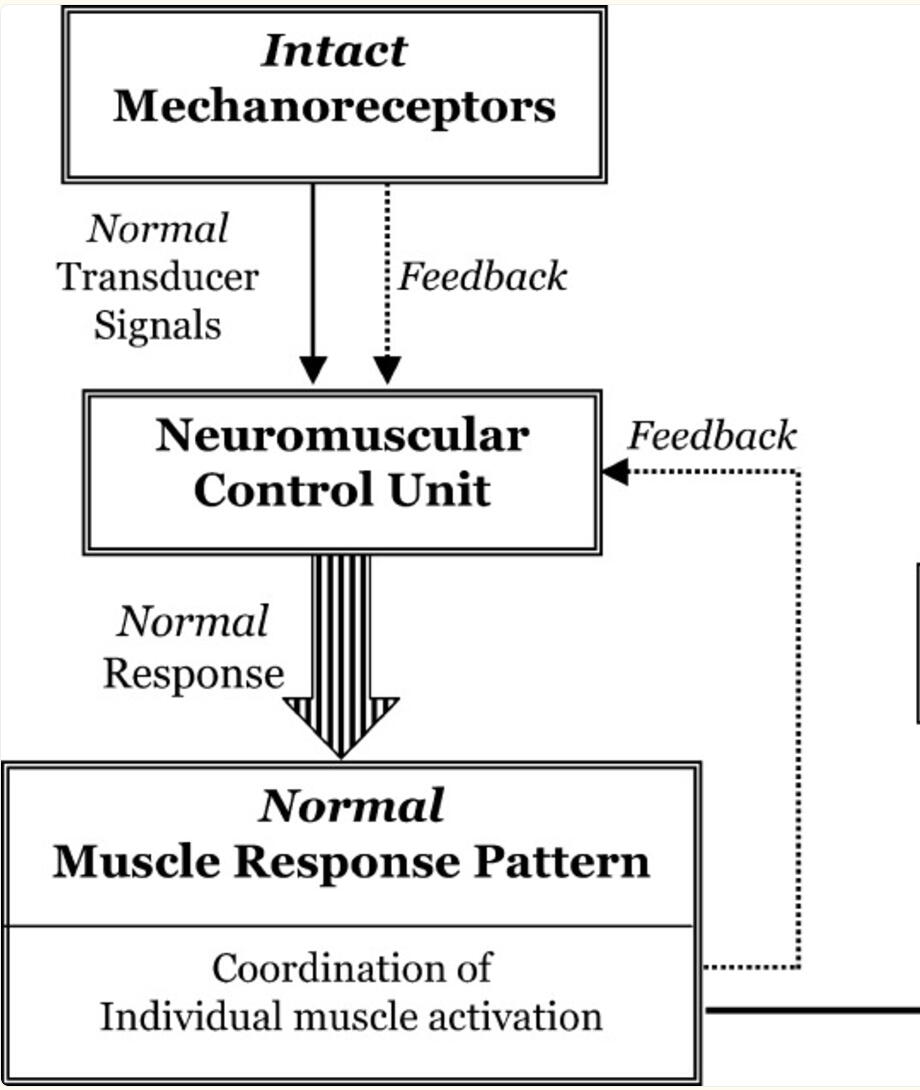 1. Arthrokinetic Reflex (AKR) and Neuromuscular FacilitationAKR is a spinal-level reflex first explored in the 1950’s. When joint mobilizations are performed, joint mechanoreceptors stimulation and reflexive muscle contraction of the surrounding muscles occur in response (Makofsky et al., 2007). The AKR also modulates the excitability of alpha motor neurons of the surrounding muscles Fisher et al., 2016; Motealleh et al., 2016). This in turn can lead to increased motor unit recruitment (more action signals sent to the muscles to fire and to contract) Fisher et al., 2016; Motealleh et al., 2016) while also reducing inhibitory signals from the brain.In practical terms: if your joint is hypomobile or dysfunctional, the local muscle(s) may be neurologically inhibited. Mobilizing the joint restores normal proprioceptive input, decreasing inhibition, and increasing muscle firing.