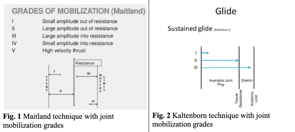 Joint mobilizations are passive, skilled manual therapy techniques that apply graded passive movements to a joint, which subsequently influences the surrounding soft tissue structures. These techniques fall on a spectrum based on amplitude and velocity, with different schools of thought.1) Maitland mobilizations (Grades I–V): Rhythmic oscillations used for pain modulation and capsular / joint mobility.2) Kaltenborn techniques: Sustained glides for joint traction and capsular stretch.3) HVLA (High Velocity, Low Amplitude AKA Maitland Grade V) thrusts: Quick manipulations applied at the end range to restore joint mechanics.4) Mulligan’s Mobilization with Movement (MWM): Combines therapist-applied glides with active, pain-free movement from the patients